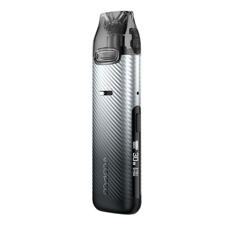 VOOPOO Vmate Pro Power Edition Kit has a 900mAh internal battery that balances size and capacity well, providing up to 30W of power. Compatible with VOOPOO Vmate V2 or VOOPOO Vmate Pod Cartridge, the VOOPOO Vmate Pro boasts 3ml of e-liquid capacity and a top filling system. The integrated mesh coil (0.7ohm and 0.4ohm) utilizes the adjustable airflow switch for enhanced flavour and smoother airflow. The OLED screen, although small, provides essential information such as battery life, wattage, coil resistance, and puff count, which enhances the user experience